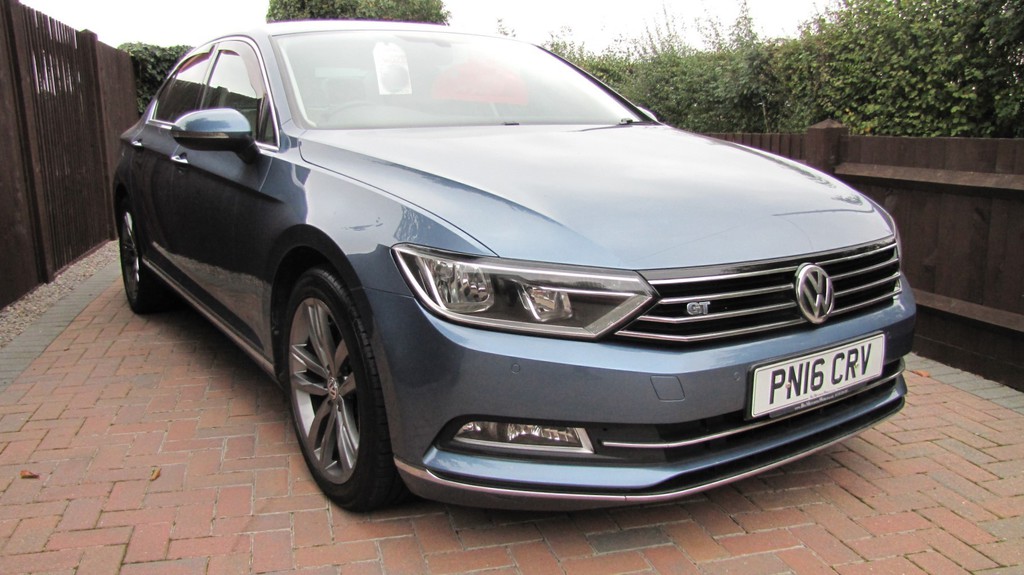 VOLKSWAGEN Passat 1.6 TDi BlueMotion Tech GT (16 reg) Blue Metallic with cream leather trim power windows and power fold heated mirrors heated front seats aircon DAB audio system 8 speakers satnav bluetooth cruise control tinted glass rear privacy glass front and rear parking sensors front foglights 18" alloy wheels remote central locking 66211 miles ..................................................................................................£8,995